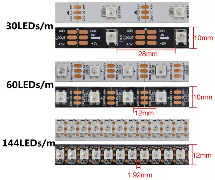 On parle alors “bande LED WS2812B” pour celui avec le chipset WS2812B.
