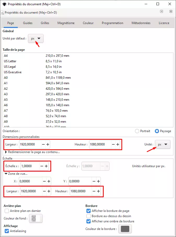 On ouvre donc les Propriétés du document… depuis le menu Fichier