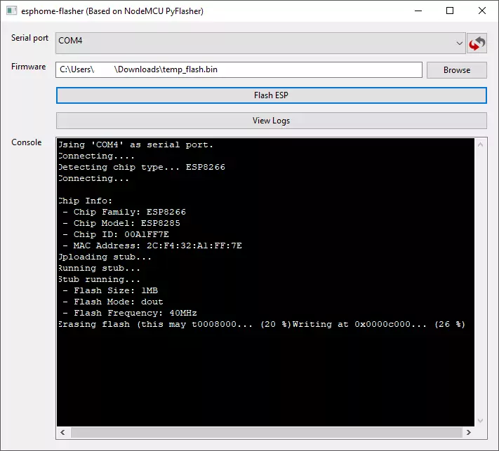 On lance alors le logiciel “ESPHome Flasher” récupérable sur la page Github du projet.