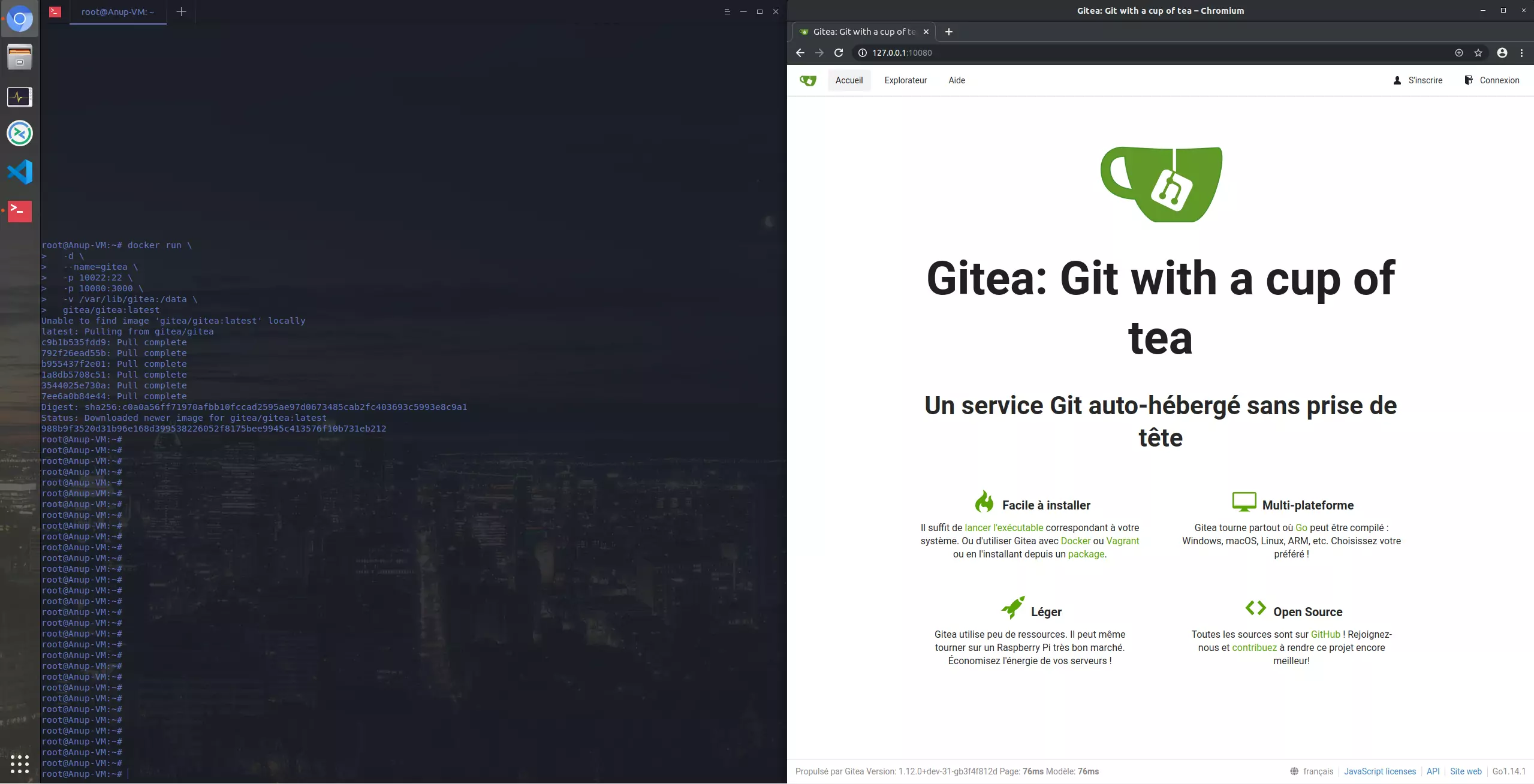 Pour cet exemple, on lancera Gitea, un service Git autohébergé